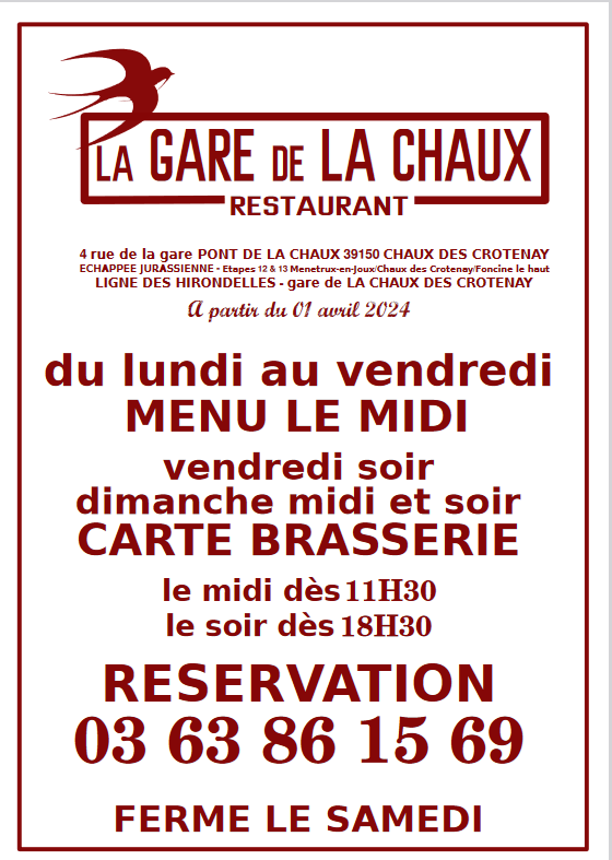 Restaurant la gare au Pont de la Chaux à 6km 03 63 86 15 69